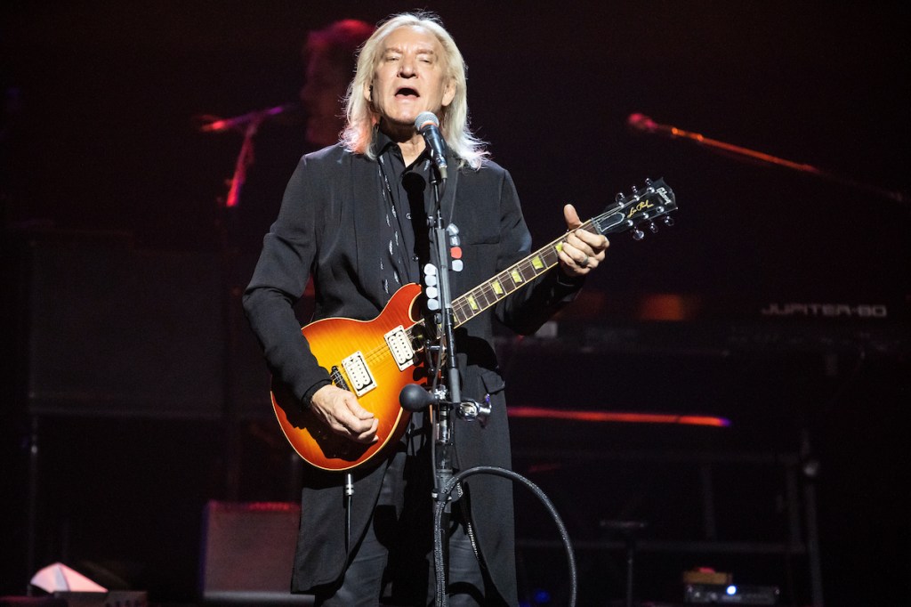 The band had a lighthearted moment during “Take It to the Limit,” as Henley playfully called out a fan for standing up, encouraging them to sit and enjoy the show. Walsh’s performance of “Rocky Mountain Way,” complete with a “Purple Haze” guitar tag, electrified the audience as he showed off his legendary guitar skills.